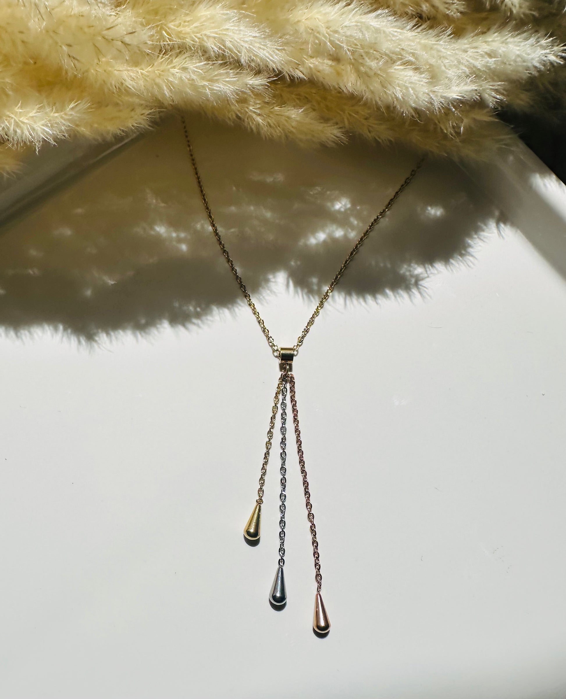 Laissez-vous séduire par ce collier raffiné en forme de goutte, alliant finesse et modernité. Conçu en acier inoxydable, il se distingue par son pendentif tricolore mêlant harmonieusement le rose gold, l’argenté et le doré. Un bijou unique et lumineux, parfait pour sublimer toutes vos tenues du quotidien.